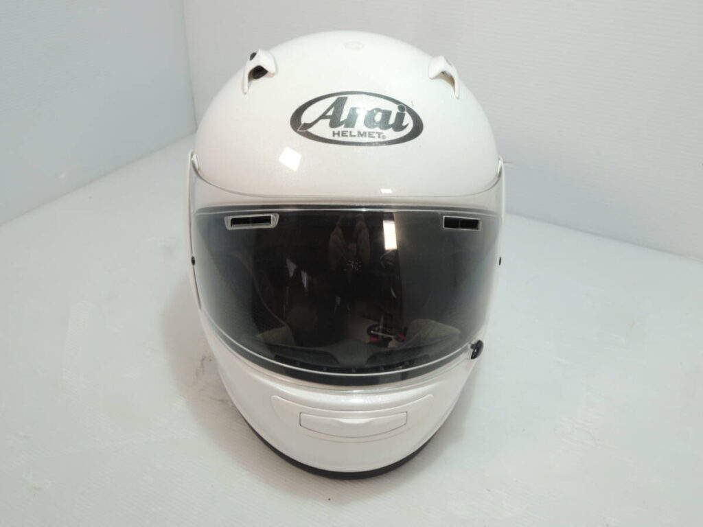 伊丹市のお客様宅にて、Arai SNELL QUANTUM-J バイク用ヘルメット 2015年製 L(59-60cm) グラスホワイトを買取させて頂きました。
