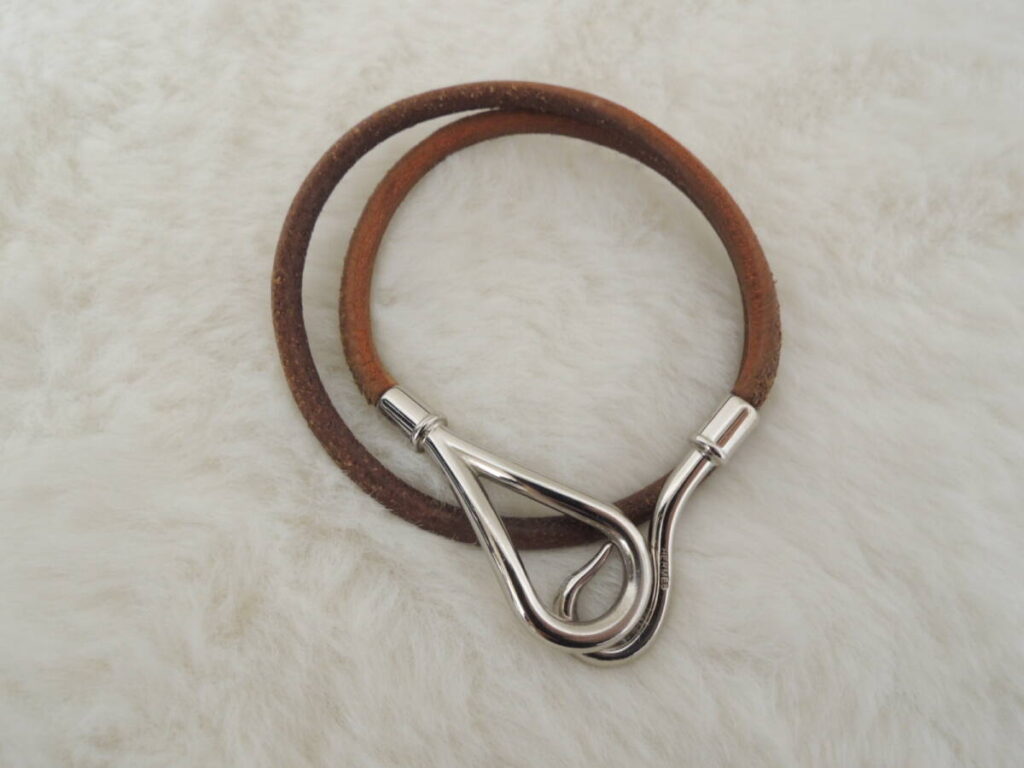 神戸市垂水区のお客様宅にて、Hermes ジャンボ レザー シルバー金具 2連ブレスレットを買取させて頂きました。