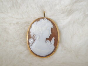 猪名川郡猪名川町のお客様宅にて、K18 シェルカメオ ブローチ ペンダントトップ 750刻印を買取させて頂きました。