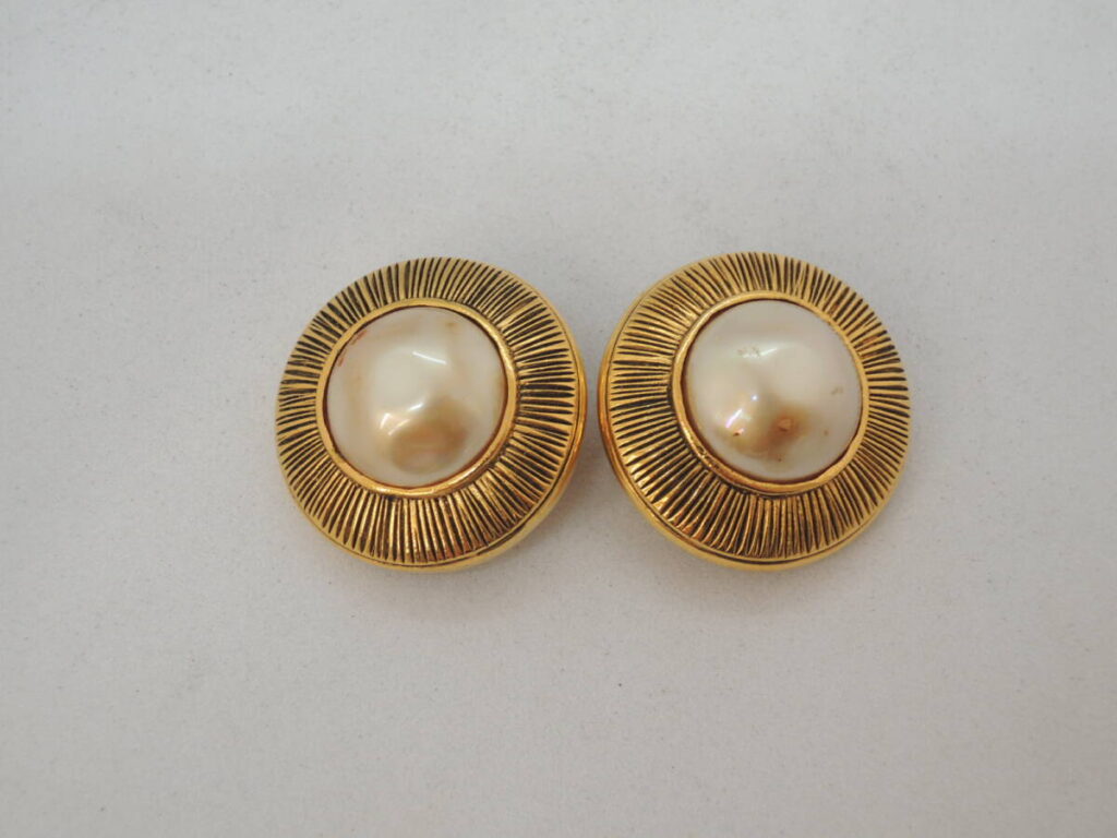 神戸市長田区のお客様宅にて、CHANEL フェイクパール イヤリング 刻印あり ゴールドカラーを買取させて頂きました。